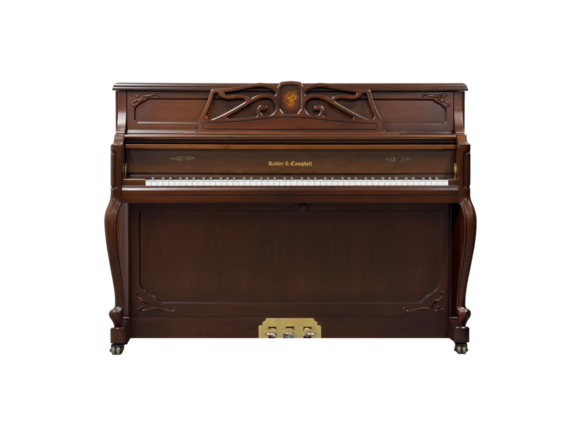 1896年ニューヨーク創業「Kohler & Campbell」の極小モデル。高さわずか110cmで、一般的なピアノ(121cm〜)に比べて格段にコンパクト。リビングや子供部屋に置いても圧迫感がありません。