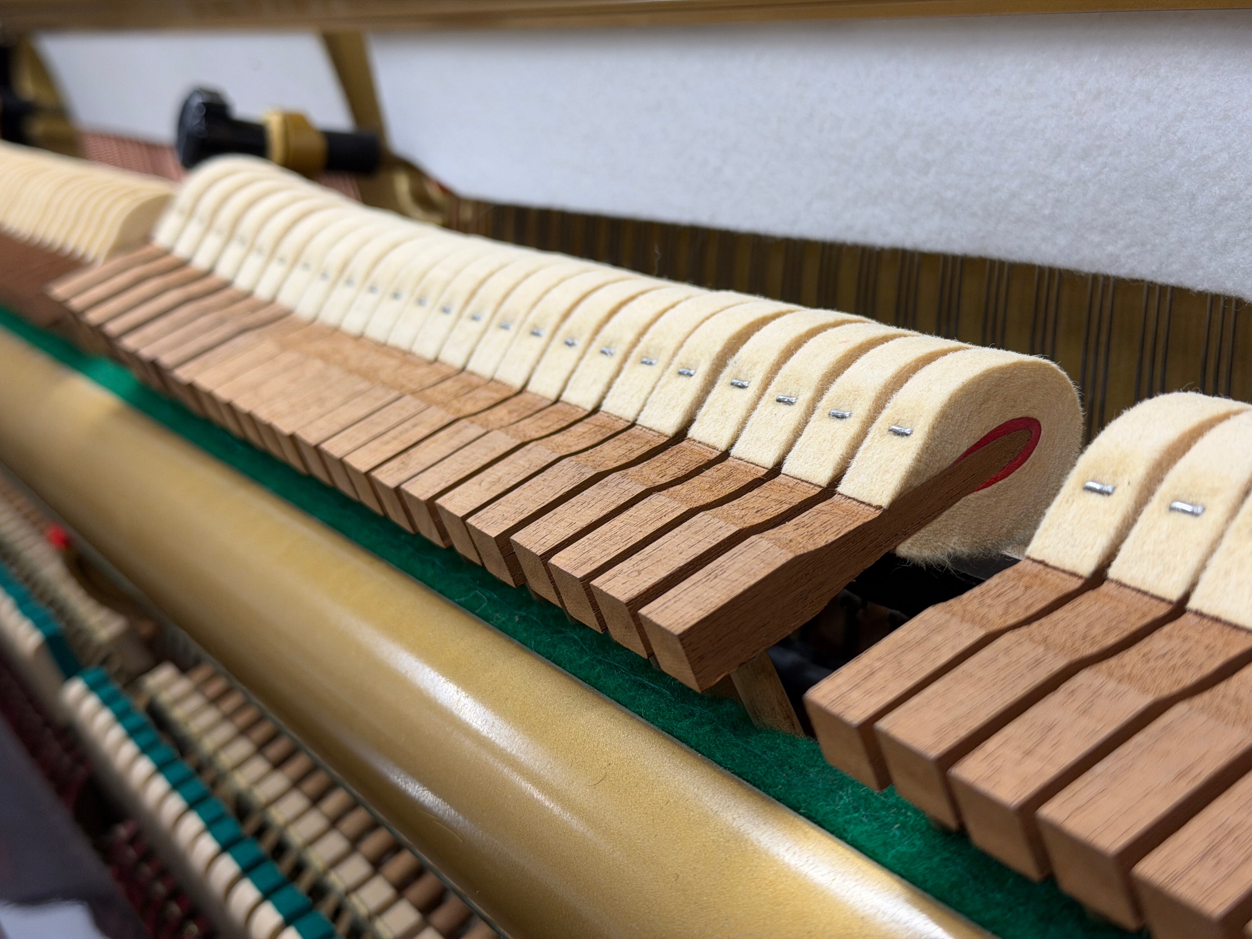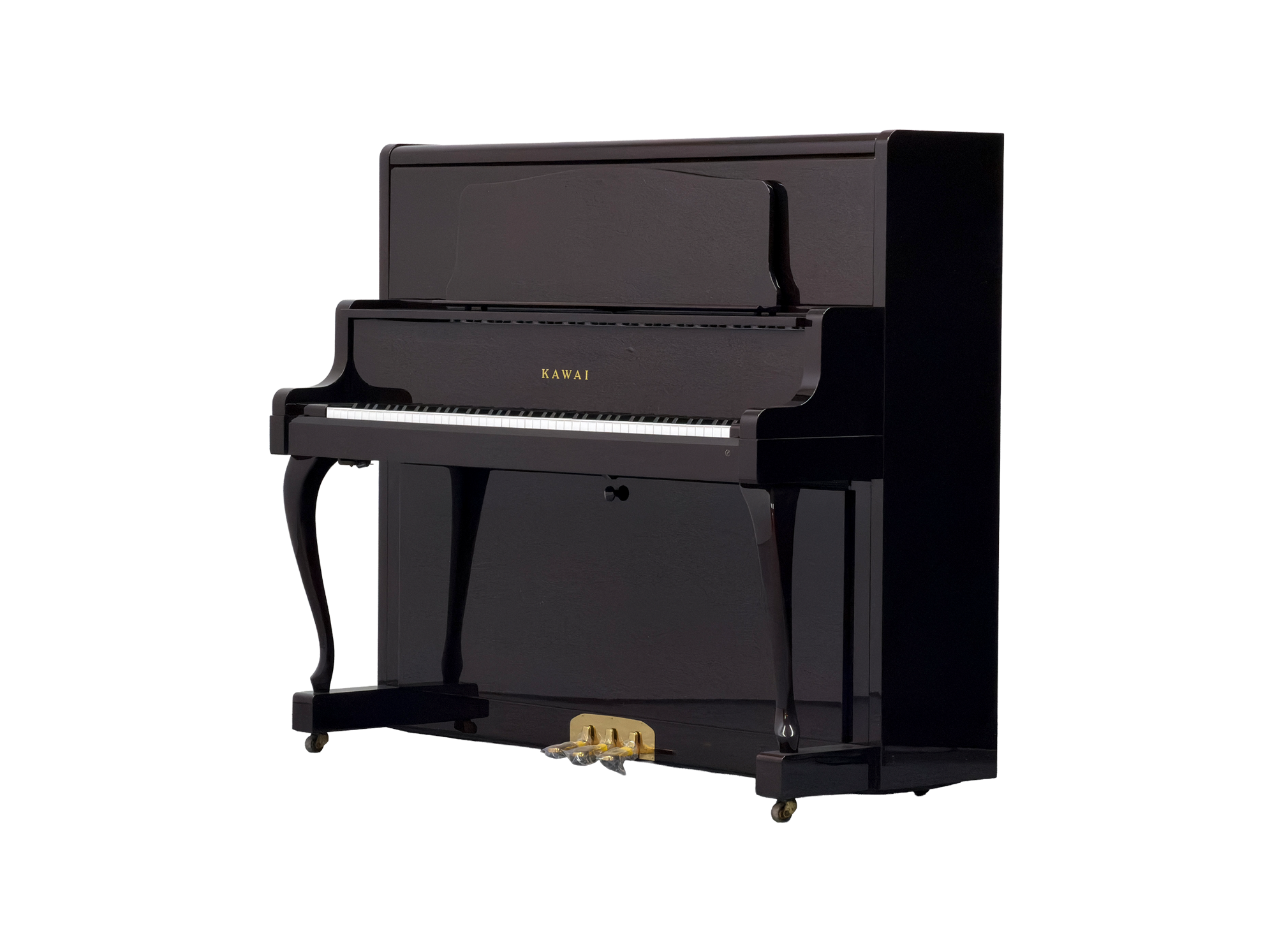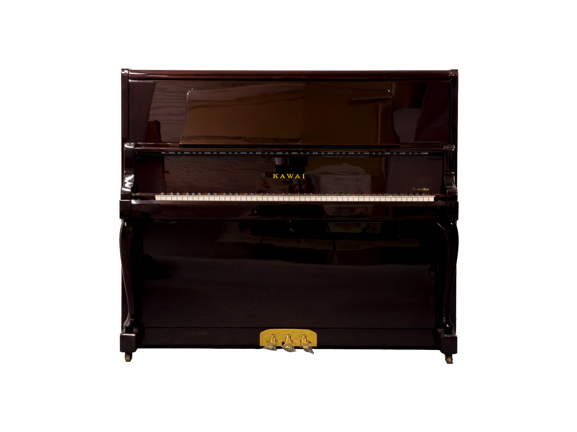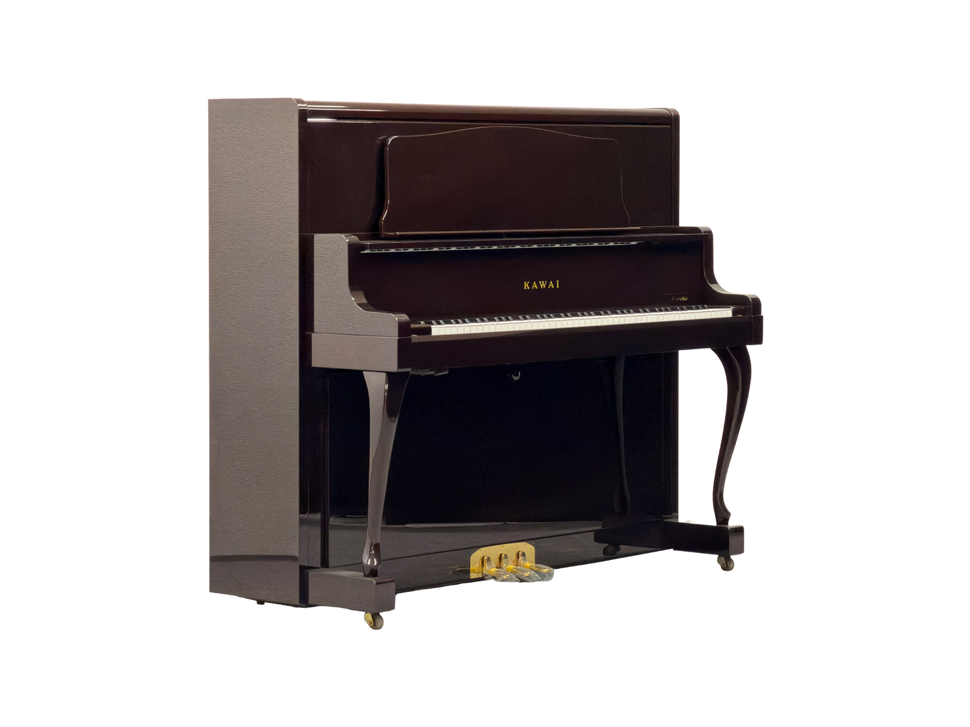 カワイの当時最上位アップライトモデル。希少なマホガニー艶出し仕上げに猫脚を採用した、高級家具のような一台です。傷なしの美品。