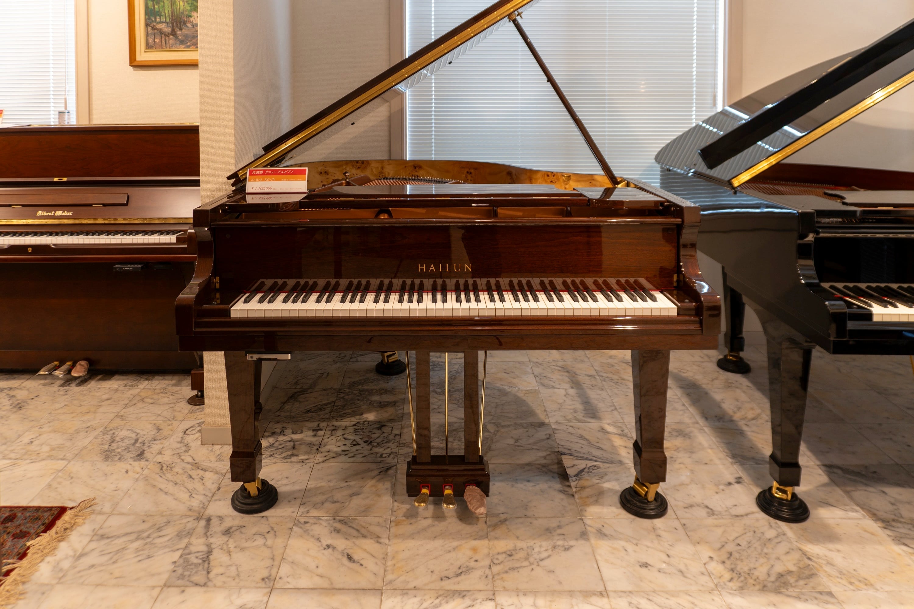 HAILUN(ハイルン)ピアノ日本総代理店・アサヒピアノが取り扱う、151cmサイズのグランドピアノです。新品の展示在庫品で、消音ユニット「PREMIUM V2」を搭載済み。ヘッドホンを使った夜間練習にも対応します。
