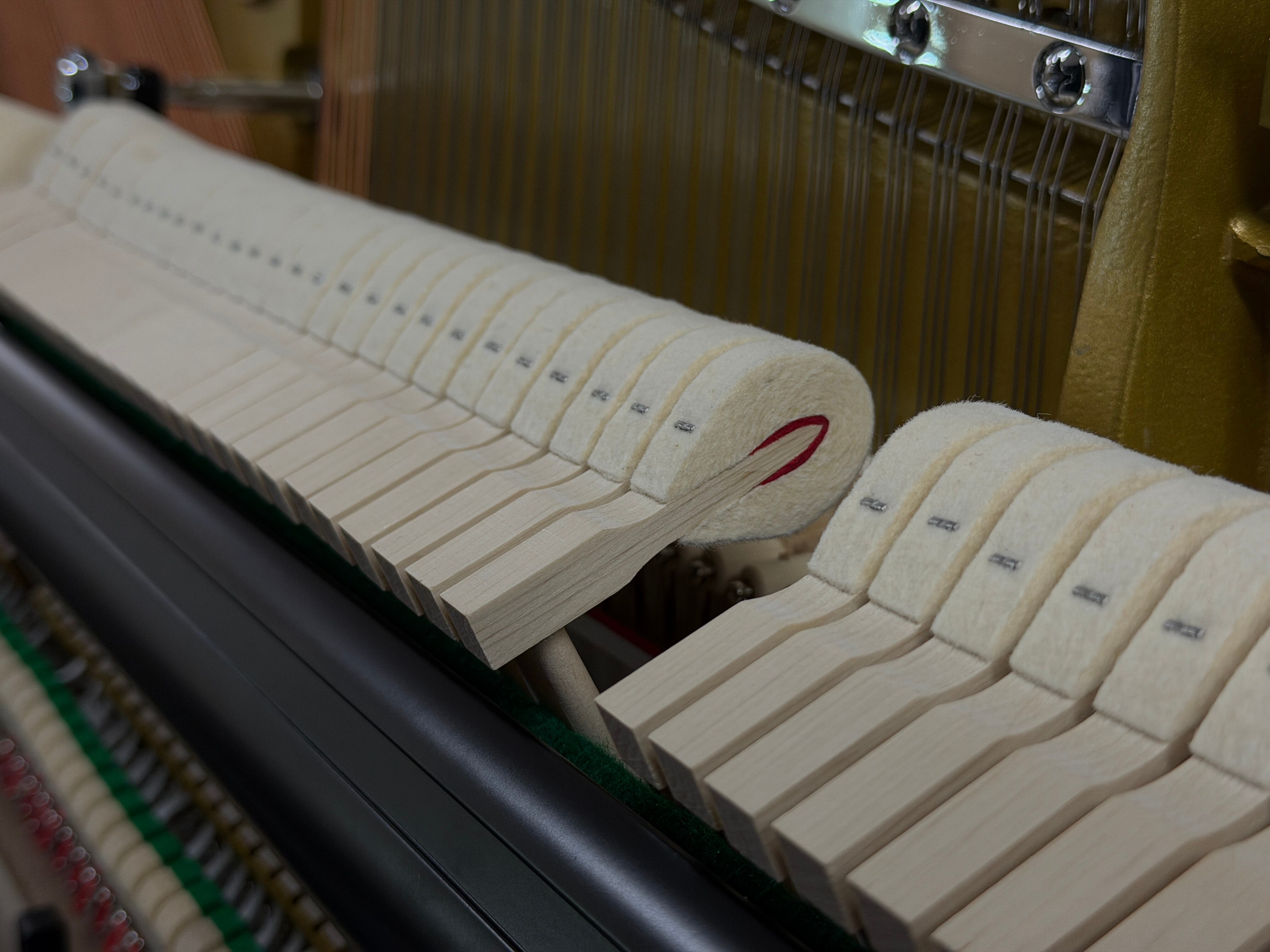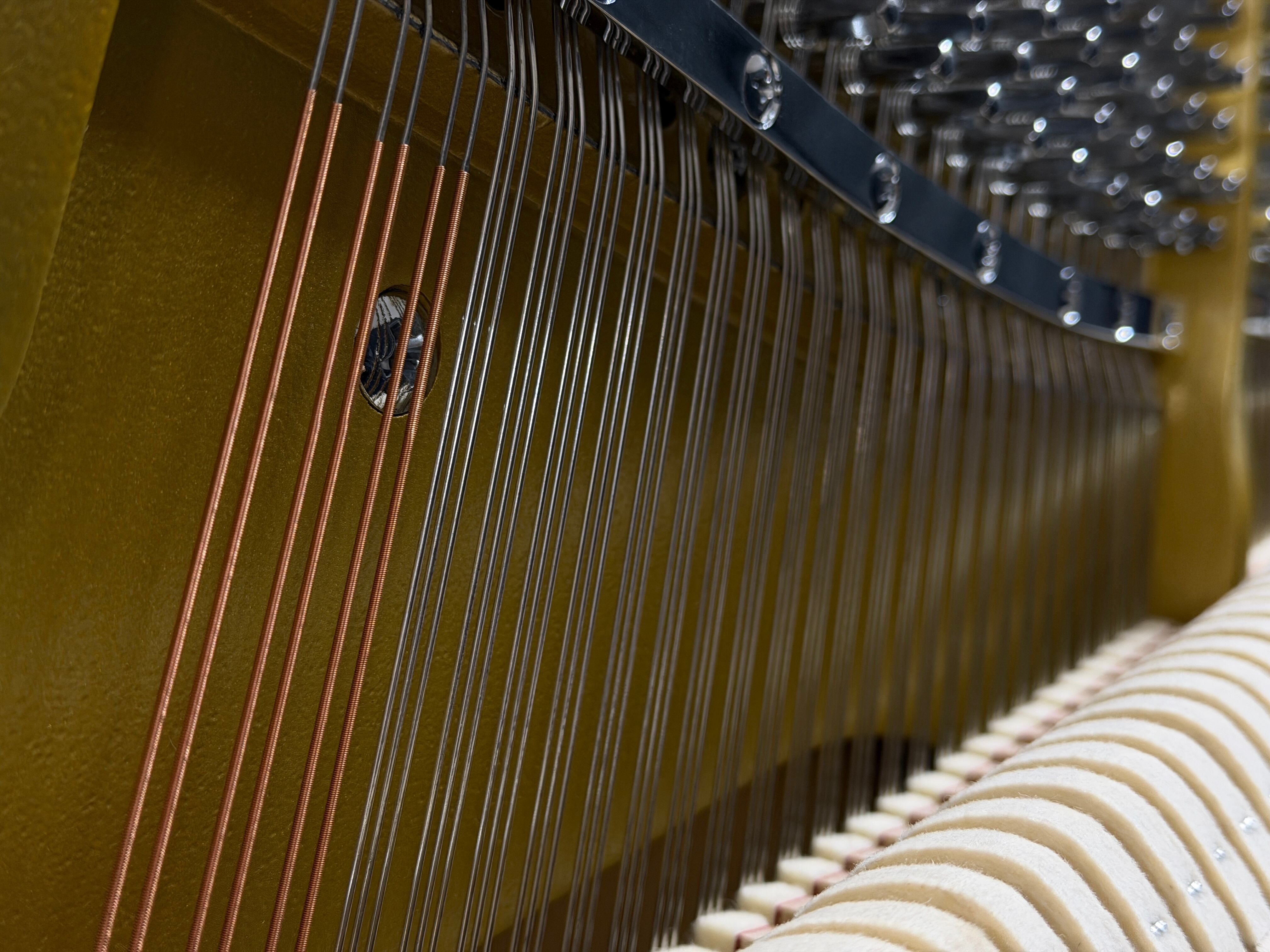 弦にはドイツ・レスロー社製、ハンマーフェルトにはドイツ・FFW社製を採用。