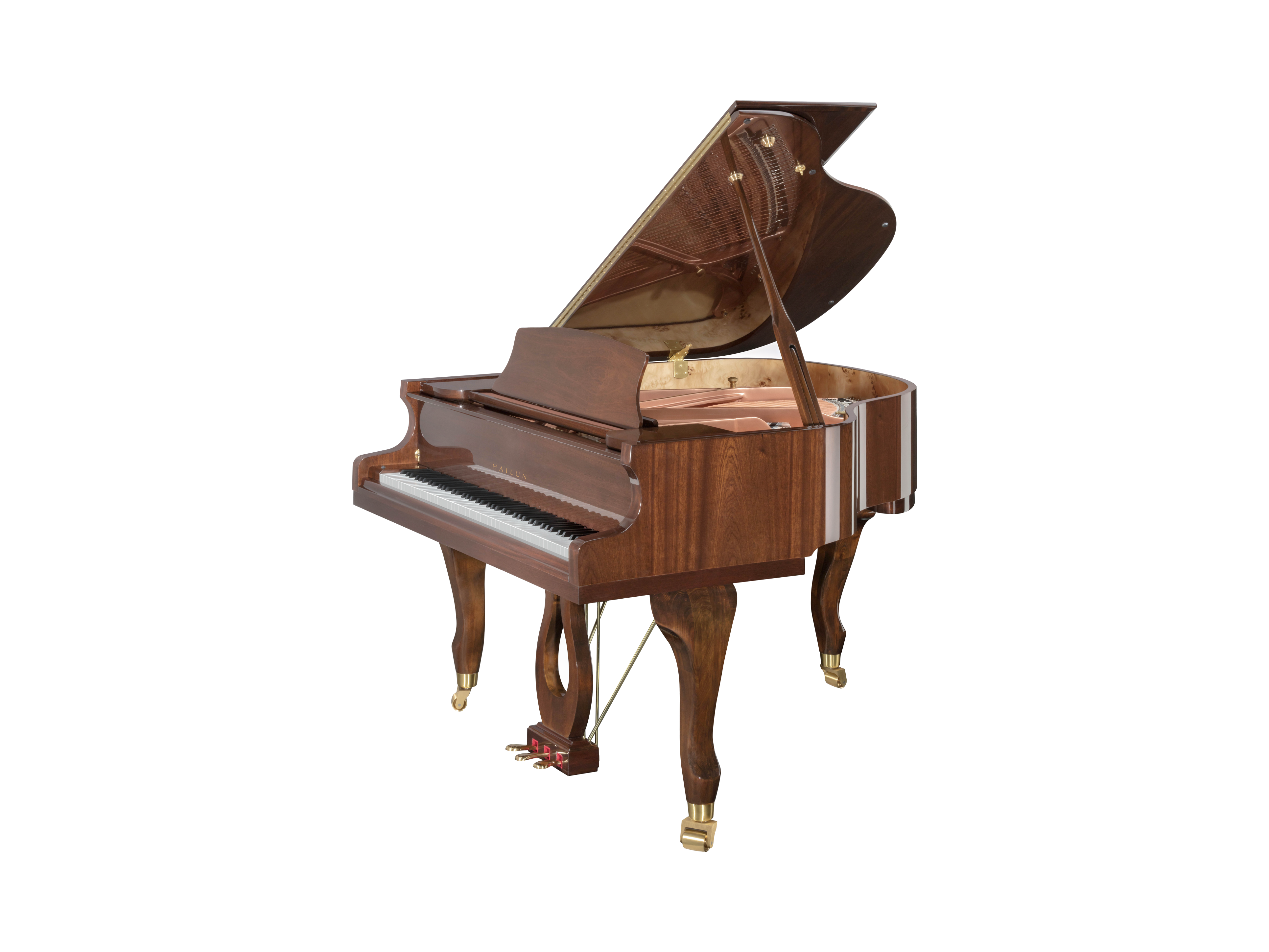 ウォールナット鏡面艶出し仕上げに、チッペンデール(猫脚)を備えたコンパクトグランドです。
