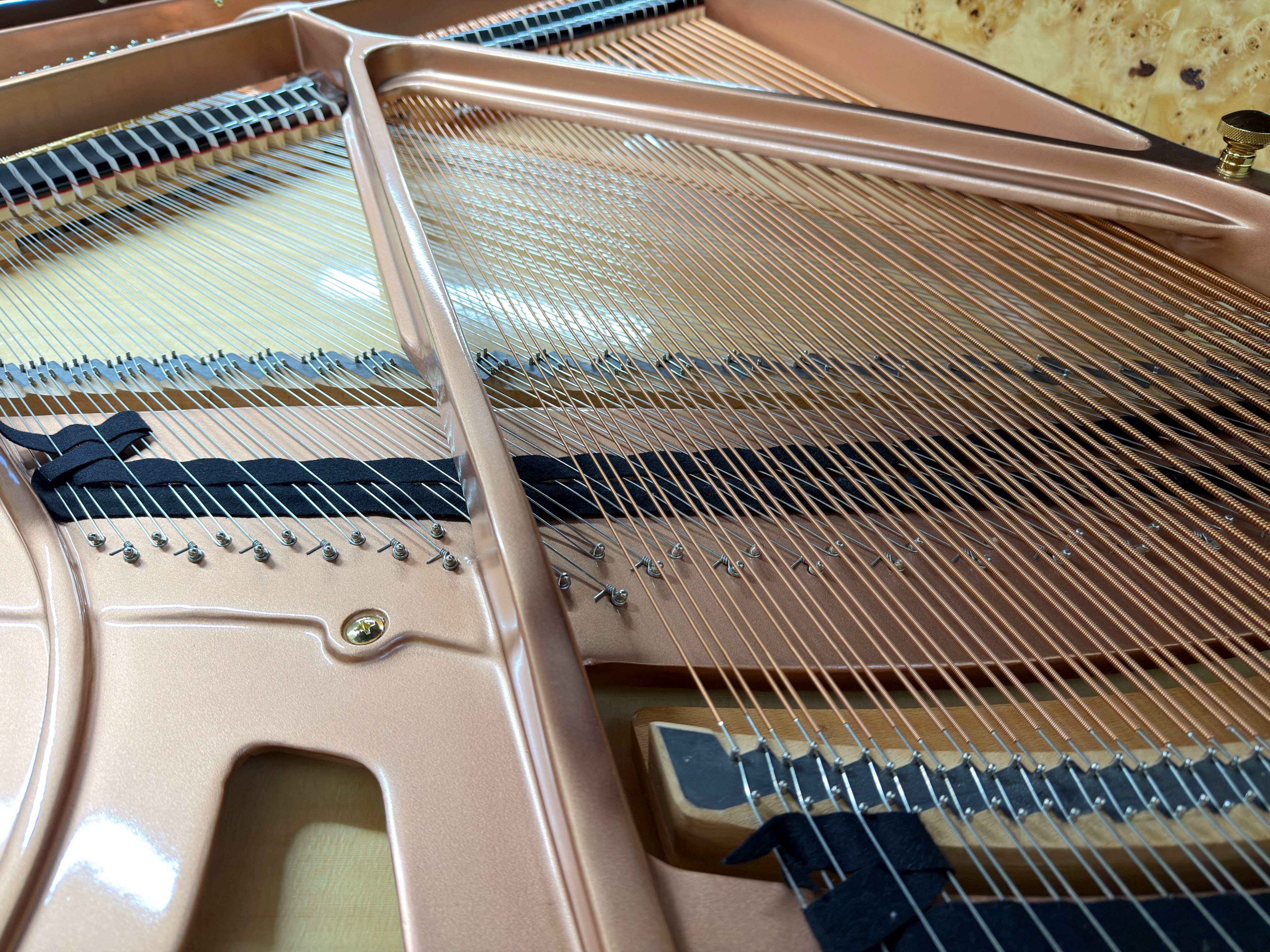 弦にはドイツ・レスロー社製、ハンマーフェルトにはドイツ・FFW社製を採用。