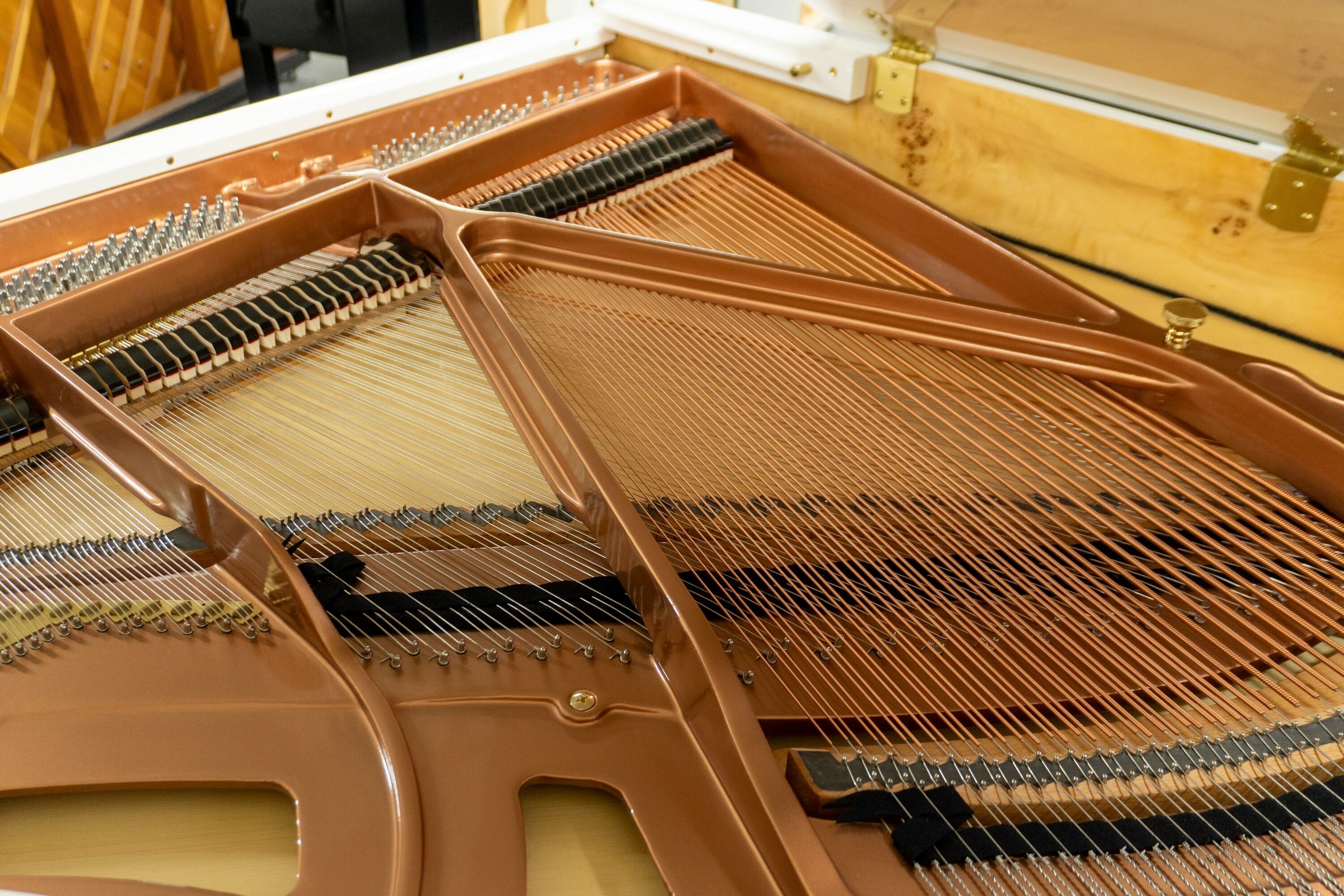弦にはドイツ・レスロー社製、ハンマーフェルトにはドイツ・FFW社製を採用。